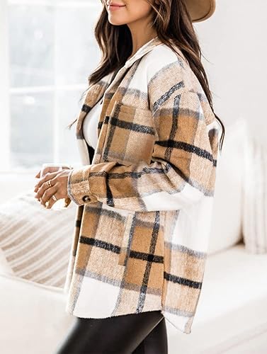 • [Feature]-This shacket jackets with two side pockets, features soft fabric, front button closure,Plaid print,Scoop hemline and midweight feel for keeping warm all day. It’ll be the prefect addition to your wardrobe.
